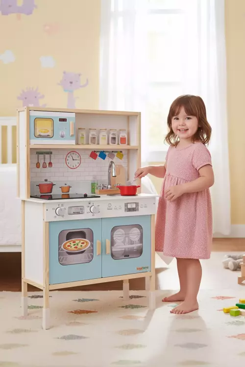 Görsel baskılar uv baskı ile yapılmıştır. Musluk özel tasarımdır. Evye ve musluk vanaları dönebilir özelliktedir. Fırın düğmeleri çocuğunuzun gerçekçi oyun dünyası için birebir orginal ve dönebilir şekilde tasarlanmıştır. Ocak özel Led tasarımıyla tamamıyla gerçekci şekilde sunulmaktadır.