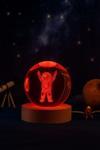 Kesene Ledli USB'li Ahşap Standlı Astronot Temalı Kristal Küre Renkli RGB Led 3D Oda Masa ve Gece Lambası