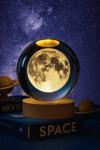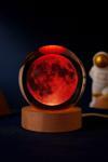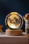 3D Ay Küre Kristal Led Gece Lambası – USB'li Ahşap Standlı LED Masa Lambası & Gece Lambası RGB Led
