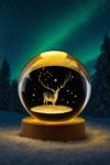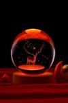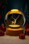 Kesene Ledli USB'li Ahşap Standlı Geyik Temalı Kristal Küre Renkli RGB LED 3D Oda Masa ve Gece Lambası