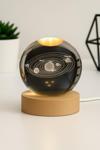 Kesene Ledli USB'li Ahşap Standlı Güneş Sistemi Temalı Kristal Küre Gün Işığı 3D Oda Masa ve Gece Lambası