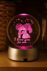 Kesene Ledli USB'li Plastik Standlı Sevgili Çiftler I Love You Forever Kristal Küre Renkli RGB Led 3D Lamba