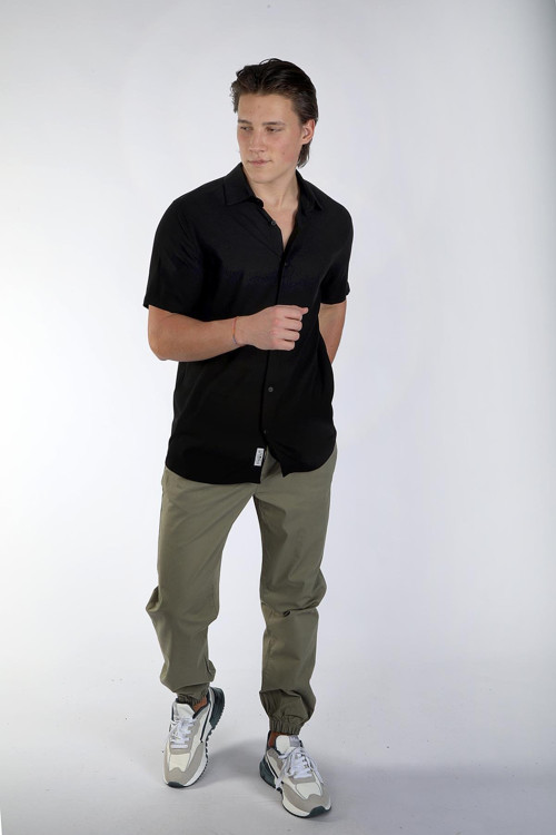 Basices Erkek Kısa Kol Dokuma Gömlek Siyah