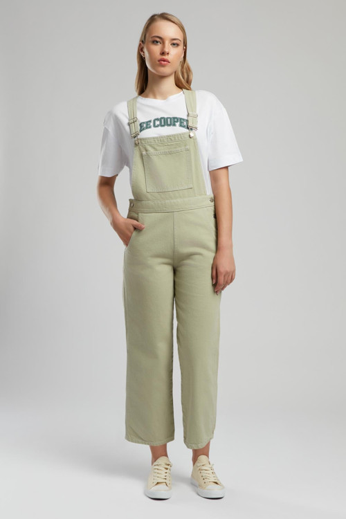 Lee Cooper Flowers Kadın %100 Pamuk Dokuma Salopet Açık Haki