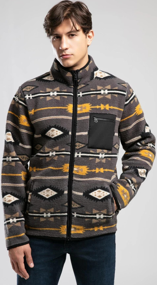 Lee Cooper Folks Desenli Regular Fit Dik Yaka Fermuarlı Polar Erkek Sweat 261 LCM 241061 7138 Gri Desenli