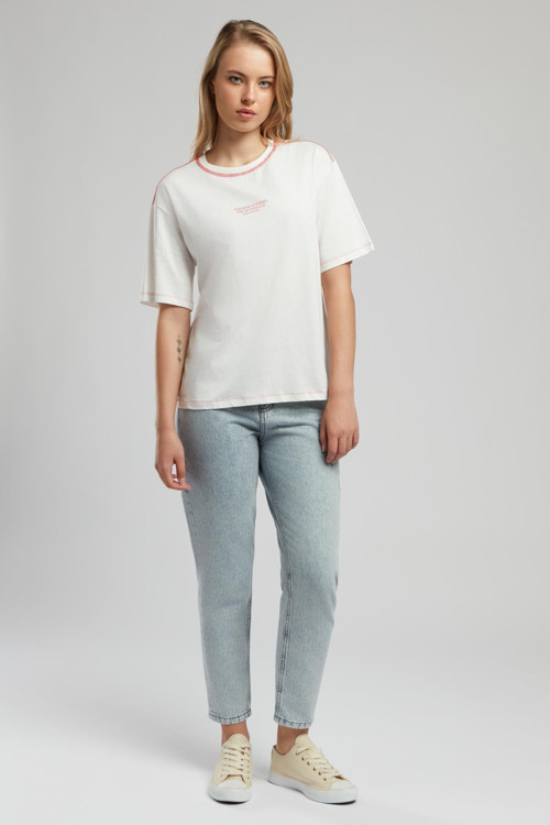 Lee Cooper Karbe Kadın %100 Pamuk O Yaka T-Shirt Ekru-K