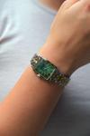 Sobce Gümüş Altın Renk Taşlı Gümüş Kadran Takvimli Kadın Kol Saat Bileklik Ve Kolye Hediyeli - Image 1