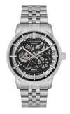 Zarif mühendislik dokunuşları ve güçlü tasarımın bir araya geldiği bu Lee Cooper iskelet kadranlı otomatik saat, sadece zamanı değil karakteri de gösterir.