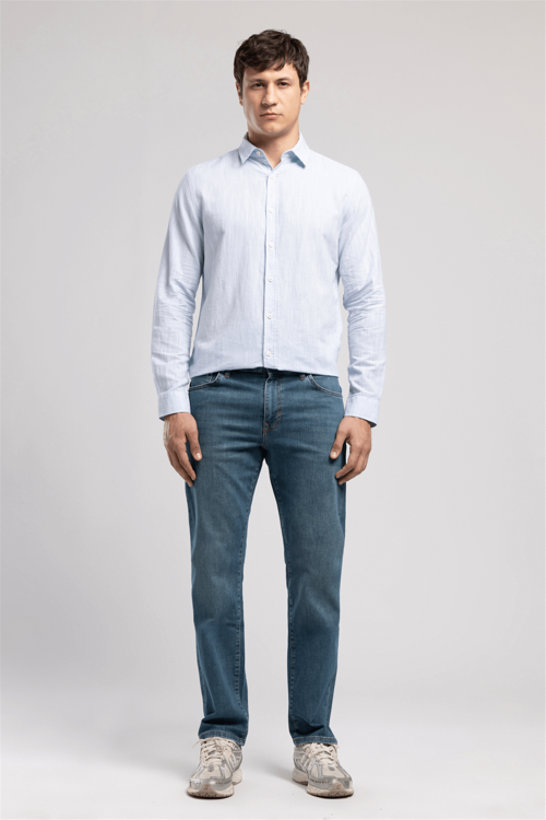 Ricky jean pantolon, high rise straight kesimiyle modern bir duruş sergilerken klasik denim mirasını bugüne taşıyor.