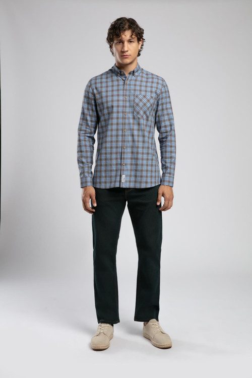 Trevor 2 Erkek Dokuma Gömlek Mavi-Taba Kareli