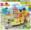 3 yaş ve üzeri okul öncesi yaştaki çocuklar, Büyük İnteraktif Mahalle Treni (10428) setiyle hayali bir yolculuğa çıkar. Özellikler ve fonksiyonlarla dolu ve 4 farklı figür içeren bu aksiyonlu oyun seti, saatlerce sürükleyici öğrenme sağlar. Küçük çocukların öğrenme yolculuğu, oyun setinin tren istasyonunda başlar. Okul öncesi yaştaki çocuklar, yaratıcı düşünerek İttir-Bırak oyuncak yolcu treninin rotasını belirler, yolda eğlenceli problem çözme görevlerinin üstesinden gelirler. Trene yükleri bindirebilir, lokomotifi şarj edebilir ya da vagonları yıkayabilirler. Oyuncak tren, 5 fonksiyonlu yapım parçasından birinin üzerinden geçtiğinde her aktivite ışıklar ve seslerle canlanır. Bu set, ayrıca tren yollarını inşa etmenin yeni yollarıyla deneme yanılmalar yaparken küçük çocukların sabrını ve merakını geliştirir. Ücretsiz LEGO® DUPLO® Interactive Trains uygulamasıyla minikler trenin yolculuğu için kendi seslerini kaydedebilir, taşınabilir elektronik bir cihaz kullanarak lokomotifi sürebilir, uygulama ayrıca ailelere alternatif model fikirleri verir.