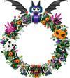 - Korkunç Cadılar Bayramı simgeleri – Renkli Cadılar Bayramı modelinde büyük bir yarasa, bal kabakları, hayalet ve örümcek ağı bulunur