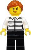 Police - Jail Prisoner 50382 Prison Stripes, Female, Black Legs, Scowl with Peach Lips, Orange Ponytail