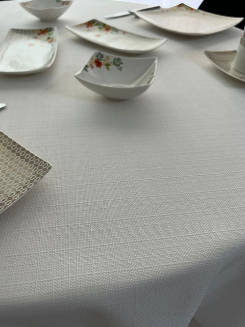 Leke Tutmaz Dertsiz Yuvarlak Masa Örtüsü Assos Beyaz