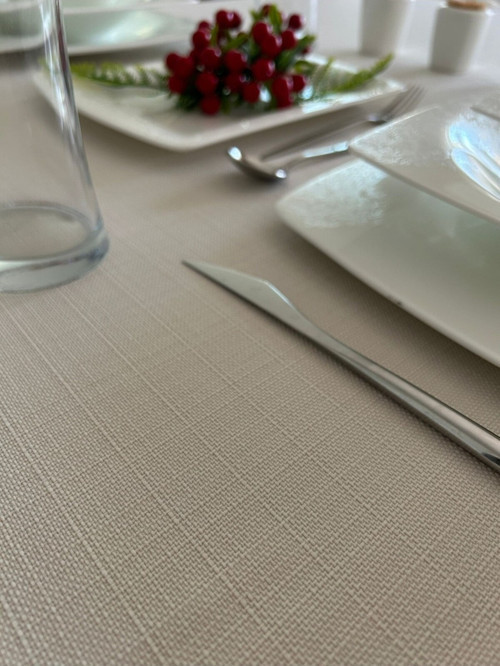 Zeren Home Leke Tutmaz Dertsiz Yuvarlak Masa Örtüsü Assos Krem