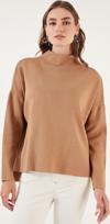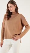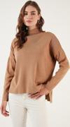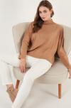 Arkası Uzun Dik Yaka İnce Triko Bayan Kazak 4615002 CAMEL