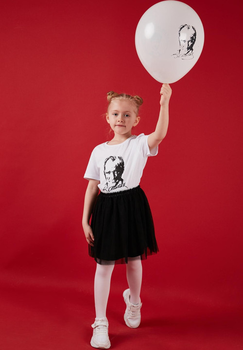 Lela Atatürk Baskı Tütü Etekli 23 Nisan 19 Mayıs 29 Ekim 10 Kasım Gösteri Kız Çocuk Takım 6212022 BEYAZ