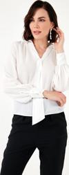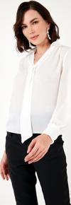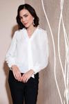 Bağlama Detaylı V Yaka Şifon Bayan Gömlek 611BZ0047 EKRU