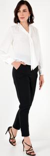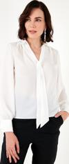 Lela Bağlama Detaylı V Yaka Şifon Bayan Gömlek 611BZ0047 EKRU