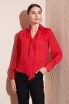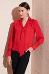 Bağlama Detaylı V Yaka Şifon Bayan Gömlek 611BZ0047 KIRMIZI