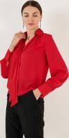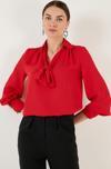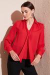 Lela Bağlama Detaylı V Yaka Şifon Bayan Gömlek 611BZ0047 KIRMIZI