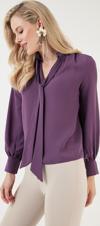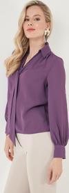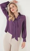 Lela Bağlama Detaylı V Yaka Şifon Bayan Gömlek 611BZ0047 MOR