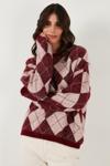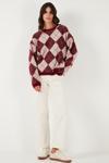 Lela Baklava Desenli Oversize Bisiklet Yaka Yumuşak Dokulu Bayan Kazak 4616262 BORDO