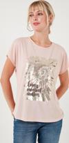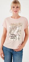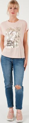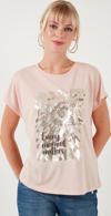 Lela Baskılı Bisiklet Yaka Regular Fit Bayan T Shirt 6671001 PUDRA