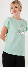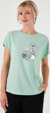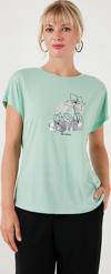 Lela Baskılı Bisiklet Yaka Regular Fit Bayan T Shirt 6671005 MİNT