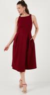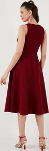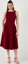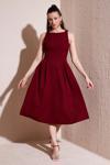 Lela Bisiklet Yaka Regular Fit Cepli Pileli Midi Bayan Elbise 6051963 BORDO