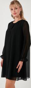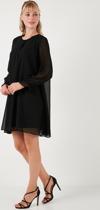 Lela Bisiklet Yaka Uzun Kollu Şifon Bayan Elbise 611EL303 SİYAH