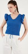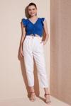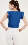 Büzgü Detaylı Kolları Fırfırlı Dar Kesim Crop Bayan Bluz 5865015 SAKS