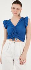 Lela Büzgü Detaylı Kolları Fırfırlı Dar Kesim Crop Bayan Bluz 5865015 SAKS