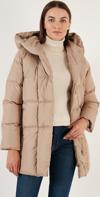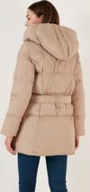 Lela Cepli Kemerli Kapüşonlu Regular Fit Kışlık Şişme Bayan Mont 55650154 VİZON