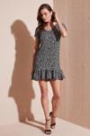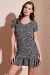 Çiçekli Fırfır Detaylı Mini Bayan Elbise 5865617 SİYAH