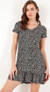 Lela Çiçekli Fırfır Detaylı Mini Bayan Elbise 5865617 SİYAH