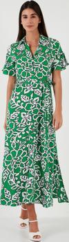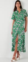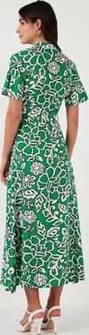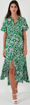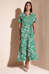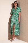 Lela Desenli Yırtmaçlı Gömlek Yaka Maxi Bayan Elbise 611EL502 YEŞİL