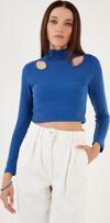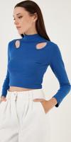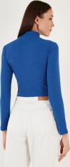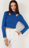 Lela Esnek Slim Fit Cut Out Pencereli Dik Yaka Crop Bayan Bluz 5865348 SAKS