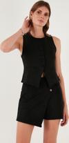 Lela Fitted Fit Bisiklet Yaka Düğmeli Yumuşak Dokulu Bayan Yelek 5866435 SİYAH