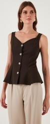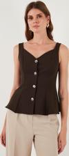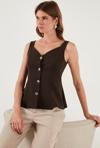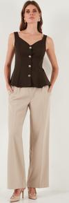 Lela Fitted Fit V Yaka Düğmeli Bayan Yelek 611FYL145 KAHVE
