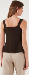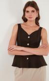 Fitted Fit V Yaka Düğmeli Bayan Yelek 611FYL145 KAHVE
