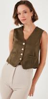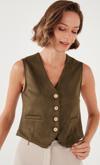 Lela Fitted Scuba Süet V Yaka Düğmeli Bayan Yelek 5865576 HAKİ