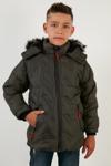 İçi Peluş Astarlı Çıkarılabilir Kapüşonlu Erkek Çocuk Mont 5760013 KOYU HAKİ
