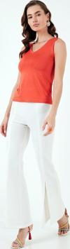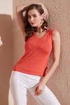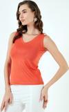 Lela Kalın Askılı V Yaka Bayan Bluz 5864384 NAR ÇİÇEĞİ