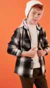 Lela Kapüşonlu Çift Cepli Ekoseli Kışlık Oduncu Erkek Çocuk Gömlek CF24W81780 Haki-Antrasit