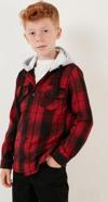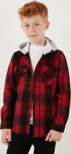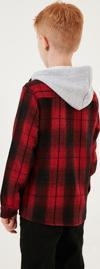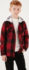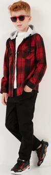 Lela Kapüşonlu Çift Cepli Ekoseli Kışlık Oduncu Erkek Çocuk Gömlek CF24W81780 KIRMIZI -SİYAH