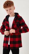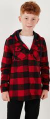 Lela Kapüşonlu Çift Cepli Ekoseli Oduncu Erkek Çocuk Gömlek CF25W81787 KIRMIZI