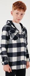 Lela Kapüşonlu Çift Cepli Ekoseli Oduncu Erkek Çocuk Gömlek CF25W81787 LACİVERT