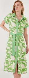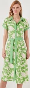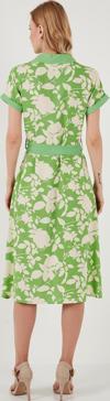 Lela Kemerli Regular Fit Midi Gömlek Bayan Elbise 66924552S4 EKRU-YEŞİL