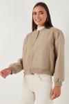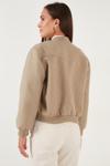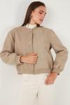 Loose Fit Sıfır Yaka Çıtçıtlı Kaşe Kısa Bayan Mont 6810178 BEJ